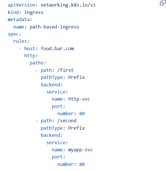 This Ingress manifest is an example of path-based routing in Kubernetes using the NGINX Ingress Controller. Let’s break it down: